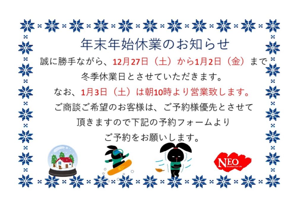 大好評!!2026年初売りイベント開催! 新年あけましておめでとうございます。皆様には昨年も大… 続きを読む: 【2026年初売り】早いもの勝ち!豪華10大オプション付き! - 【年末年始休業のお知らせ】