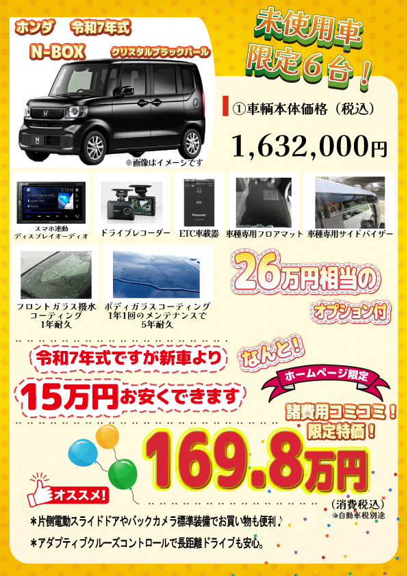 ★未使用車の詳細は【厳選お買い得車】→【軽自動車】をクリックし【タイプ検索】で【未使用車】にチェックを入れ【検索】!!