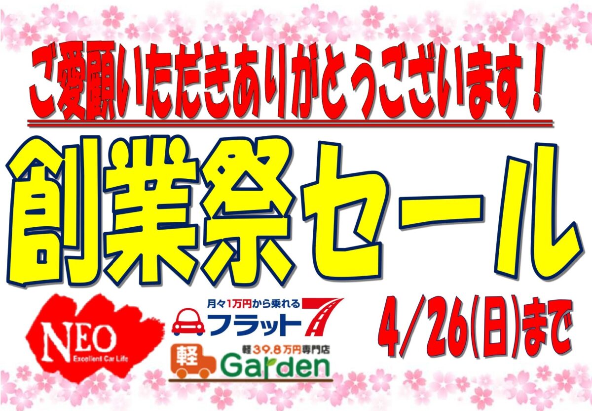 お待たせしました!ネオでは只今、創業祭セール開催中です!