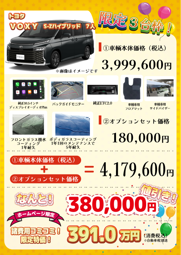 車輌:【限定3台枠】新車 VOXY S-Z ハイブリッド7人