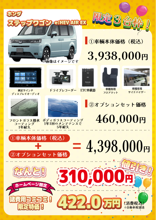 車輌:【限定3台枠】新車 ステップワゴン e:HEV AIR EX