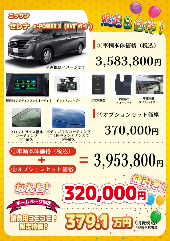 車輌:【限定3台枠】新車 セレナ e-POWER XV