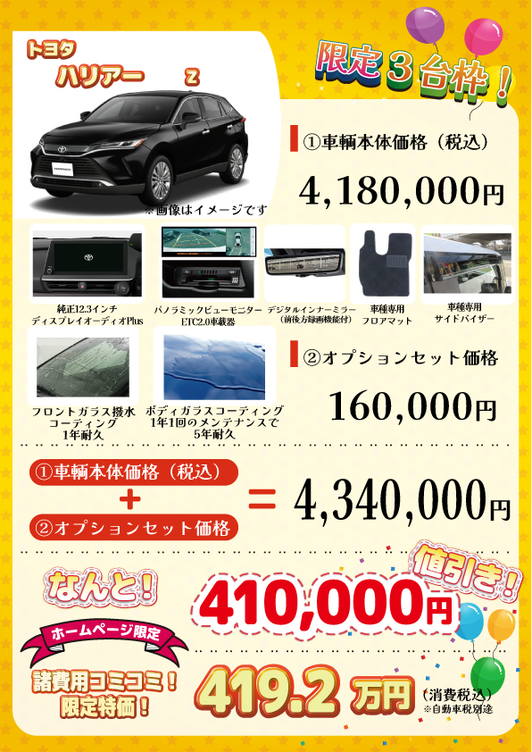 車輌:【限定3台枠】新車ハリアー Z(ガソリン)