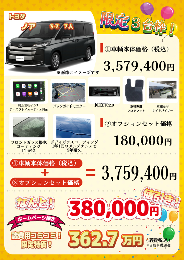 車輌:【限定3台枠】新車ノア S-Z(ガソリン)7人