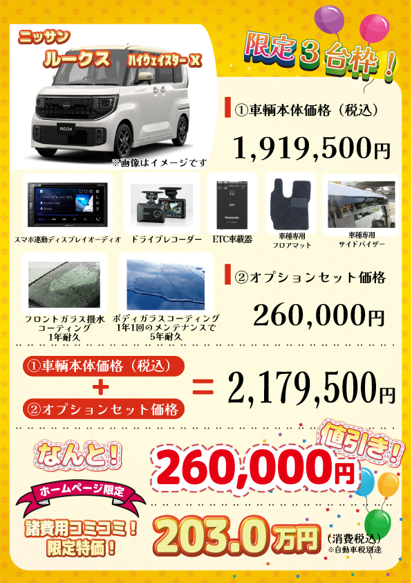 車輌:【限定3台枠】新車 ルークス ハイウェイスターX