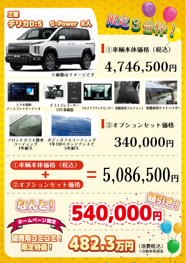 車輌:【限定3台枠】新車 デリカD:5 G-Power 8人乗り