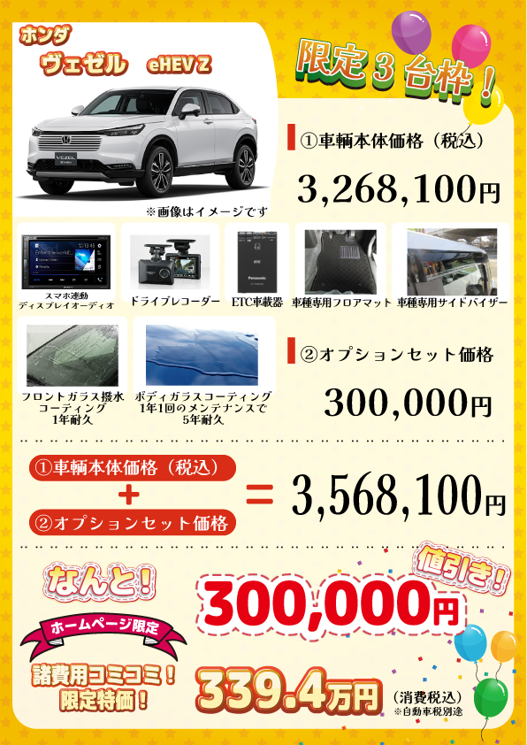車輌:【限定3台枠】新車 ヴェゼル e:HEV Z