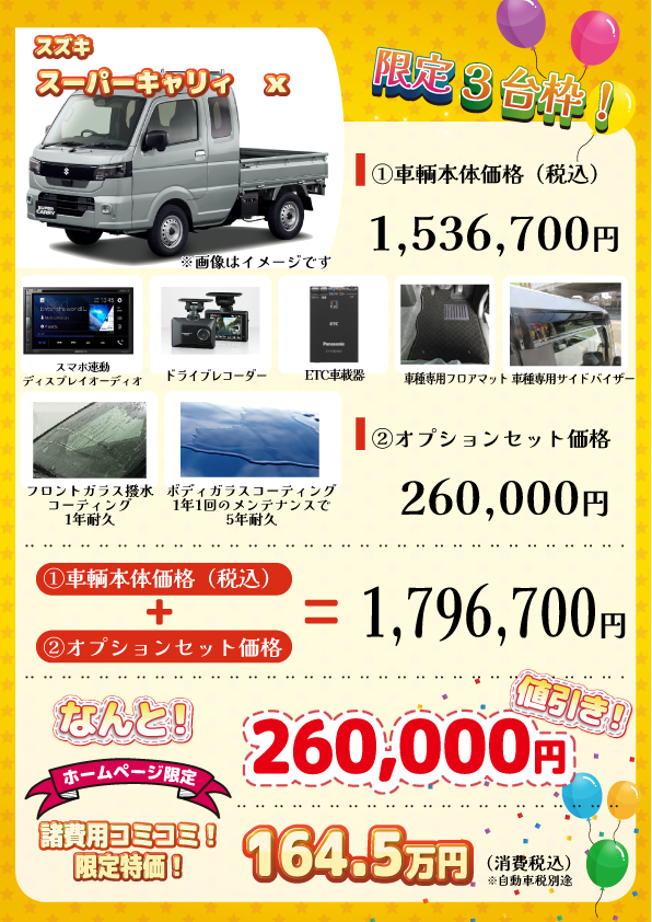 早い者勝ちの限定3台枠のみの特別車です。
