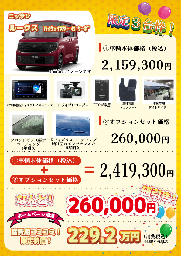 車輌:【限定3台枠】新車 ルークス ハイウェイスターG ターボ
