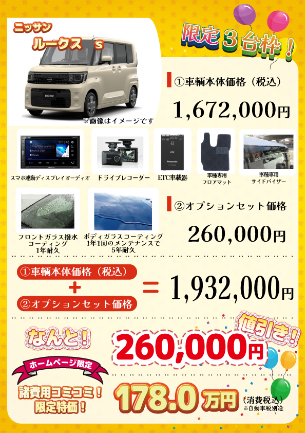 車輌:【限定3台枠】新車 ルークス S
