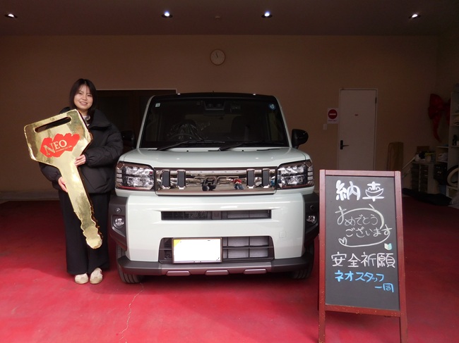この度は新車タフトのご購入誠にありがとうございます🚙✨ 新車タフトと素敵なCarLifeを過ごしてください🎵 オニキス姫路ネオ納車 ✨1月31日 兵庫県姫路市 K様 シエンタ✨ 関連記事 ✨1月31日 兵庫県姫路市 K様 シエンタ✨ 2026年1月31日 ✨1月26日 兵庫県たつの市 M様 エヴリィ✨ 2026年1月26日 ✨1月25日 兵庫県神崎郡 U様 ソリオバンディッド✨ 2026年1月25日 ✨1月25日 兵庫県姫路市 N様 ムーヴ✨ 2026年1月25日 ✨1月24日 兵庫県たつの市 Y様 フリード✨ 2026年1月24日 ✨1月24日 兵庫県宍粟市 T様 ハイゼットトラック✨ 2026年1月24日 ✨1月24日 兵庫県三木市 I様 アクア✨ 2026年1月24日 ✨1月24日 兵庫県姫路市 A様 タントカスタム✨ 2026年1月24日